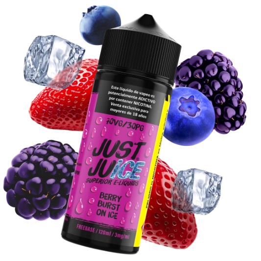 Disfruta de la frescura intensa con JUST JUICE BERRY BURST ICE, un e-liquid de 120ml que mezcla una variedad de bayas jugosas con un toque helado. Esta mezcla vibrante es perfecta para quienes buscan un vapeo refrescante y frutal.