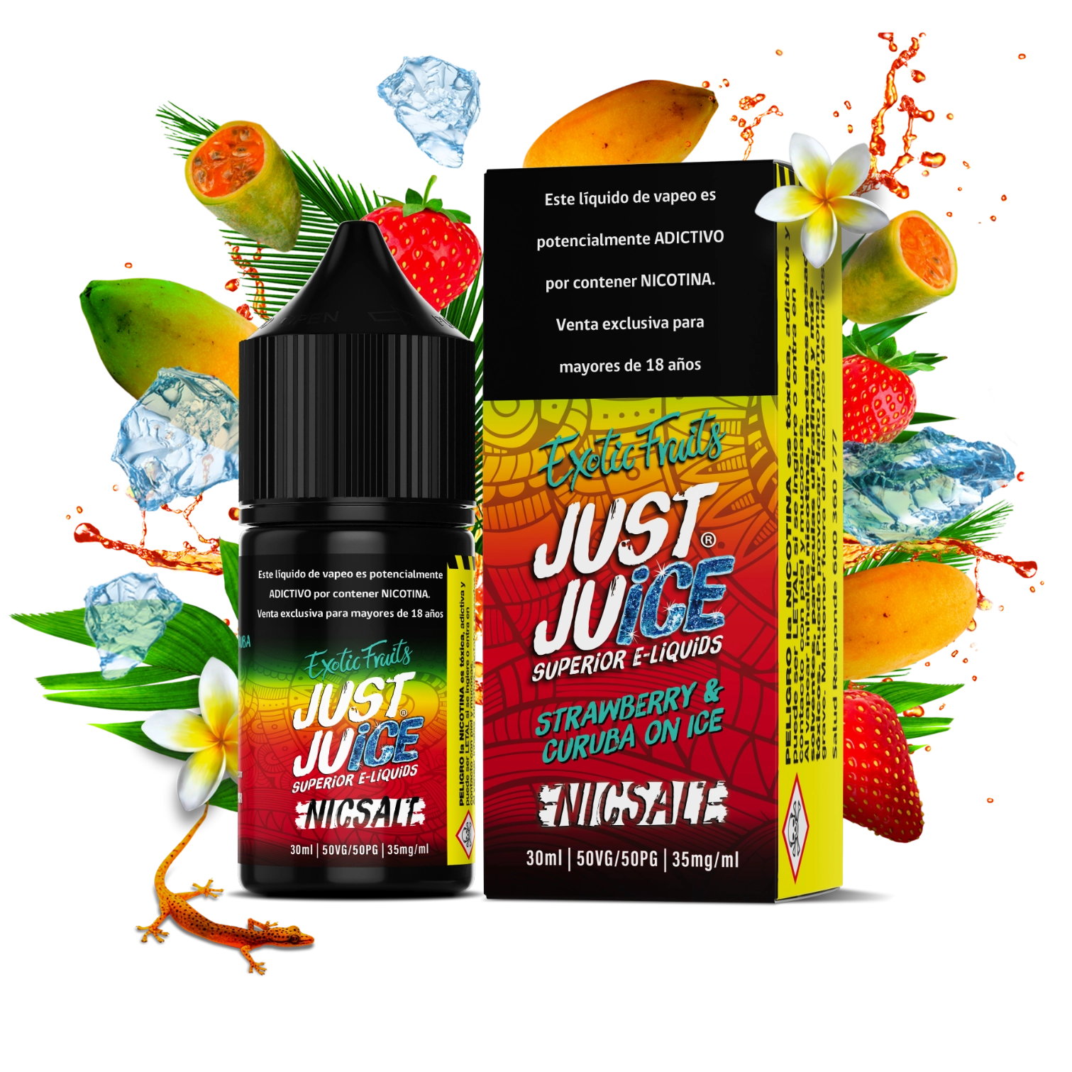 Haz de JUST JUICE SALT NIC STRAWBERRY CURUBA SUPER ICE tu elección diaria y disfruta de la frescura en cada inhalación.