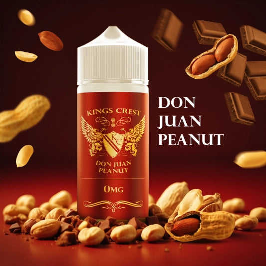 Disfruta de una experiencia de vapeo única con el Kingcrest Don Juan Peanut, un e-liquid premium de 120ml que fusiona sabores irresistibles. Esta deliciosa mezcla combina la suavidad del pastel de chocolate con un rico relleno de mantequilla de maní, creando una combinación perfecta que satisfará a los amantes de los postres y los sabores cremosos.